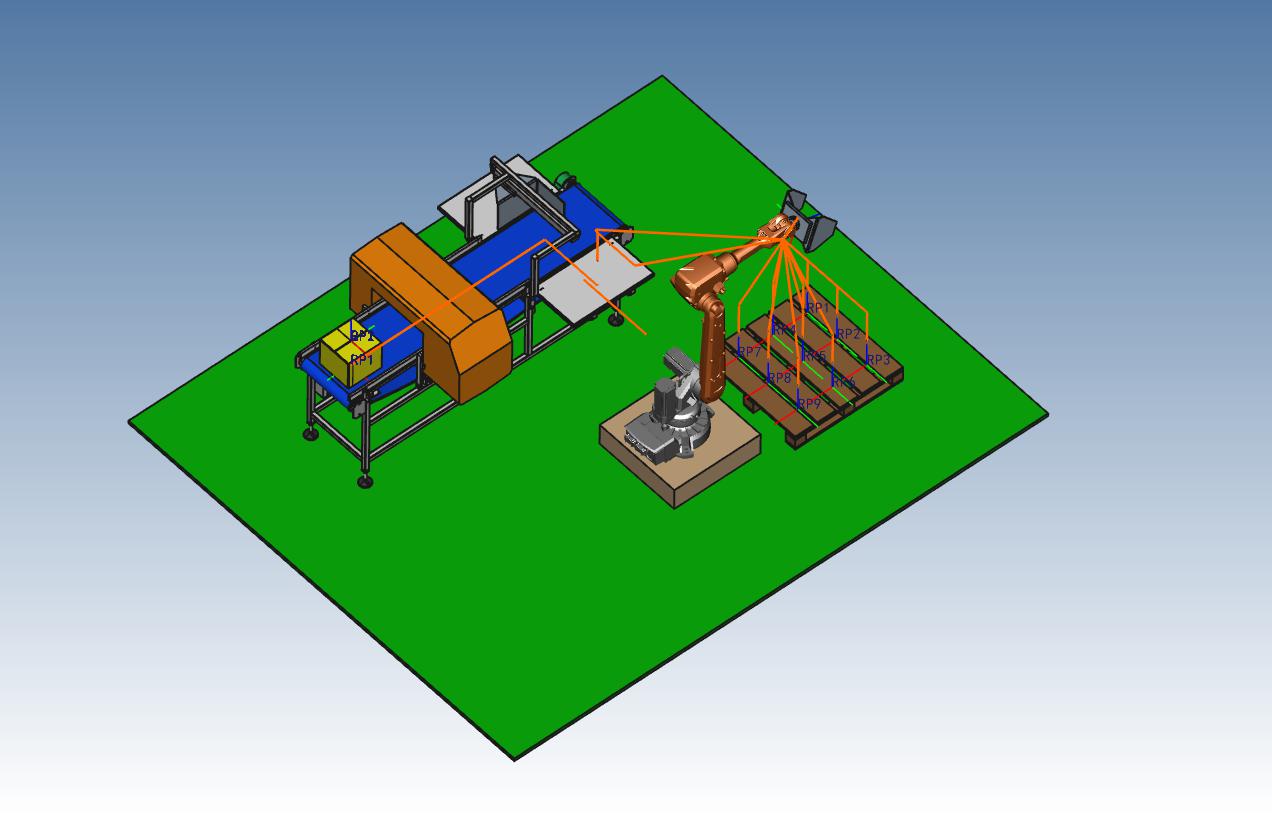 这个例子,只是简单模拟一下如何用离线编程软件制作钣金折弯的轨迹。因为实际中,折弯机的高度有限,折弯的板材可能长宽比又大。因此, 1.机器人选型时,二轴的臂长尽量要短 ;三轴臂长尽量要长; 2. 钣金吸盘工具需要特制,保证抓住板材后,尽量向机器人一侧偏离,从而避免板材和三、四轴干涉; 3. 实际折弯过程中,机器人可以从下往上抬举运动,也可从下往上拽起运动。; 4.为提高工作效率,整个过程中机器人始终抓取着板材 。 本例只是演示,不太符合上述几个条件,仅仅验证能力。