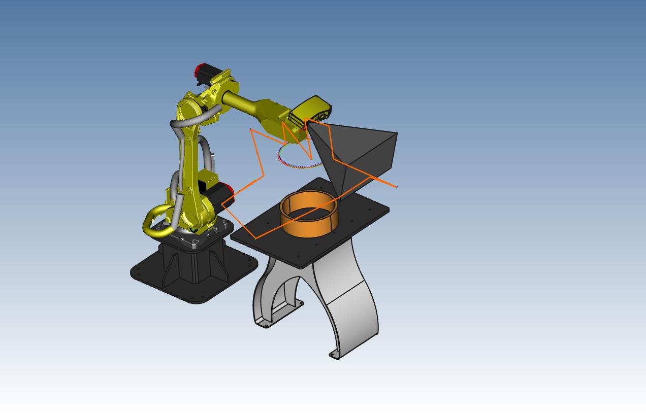 工业机器人3D检测、扫描:采用FANUC-R 0iB机器人、借助3D CaMega CP300 测量系统,对一些复杂的工业零部件进行3D扫描。 扫描结果:一方面可以后续借助3D 打印设备,直接将其打印成型(增材制造);另一方面,可以将扫描点云数据,借助专业的点云处理软件,将其实体化,然后导入3D软件进一步改进后,生成图纸,进行后续的生产制造(减材制造)。