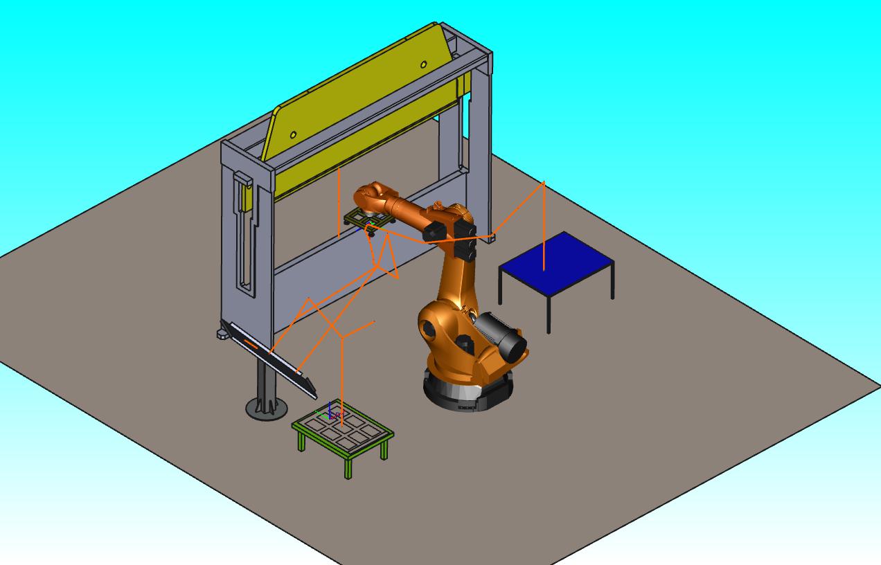 这个例子,只是简单模拟一下如何用离线编程软件制作钣金折弯的轨迹。因为实际中,折弯机的高度有限,折弯的板材可能长宽比又大。因此, 1.机器人选型时,二轴的臂长尽量要短 ;三轴臂长尽量要长; 2. 钣金吸盘工具需要特制,保证抓住板材后,尽量向机器人一侧偏离,从而避免板材和三、四轴干涉; 3. 实际折弯过程中,机器人可以从下往上抬举运动,也可从下往上拽起运动。; 4.为提高工作效率,整个过程中机器人始终抓取着板材 。 本例只是演示,不太符合上述几个条件,仅仅验证能力。